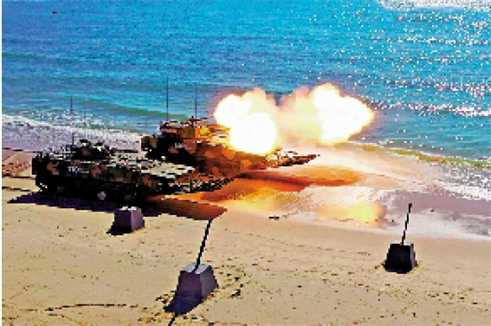圖:05式兩棲裝甲突擊車可在搶灘中提供火力支援。