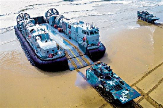 圖:海軍的“野馬”氣墊船可運載裝甲車登陸。