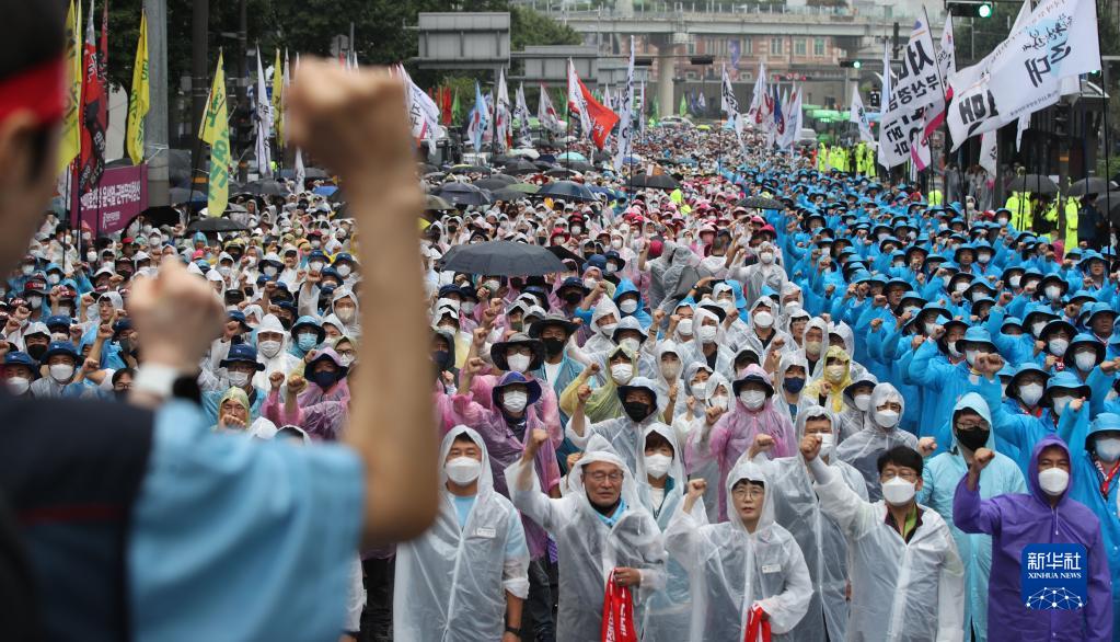 8月13日,集會(huì)者在韓國(guó)首爾市中心參加反美集會(huì)。新華社/紐西斯通訊社