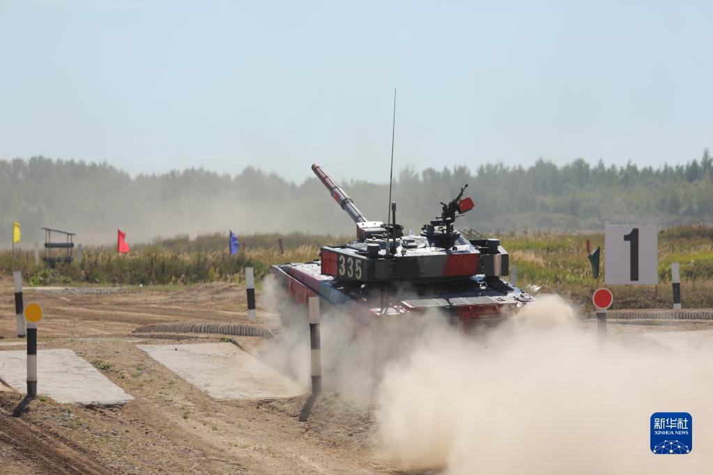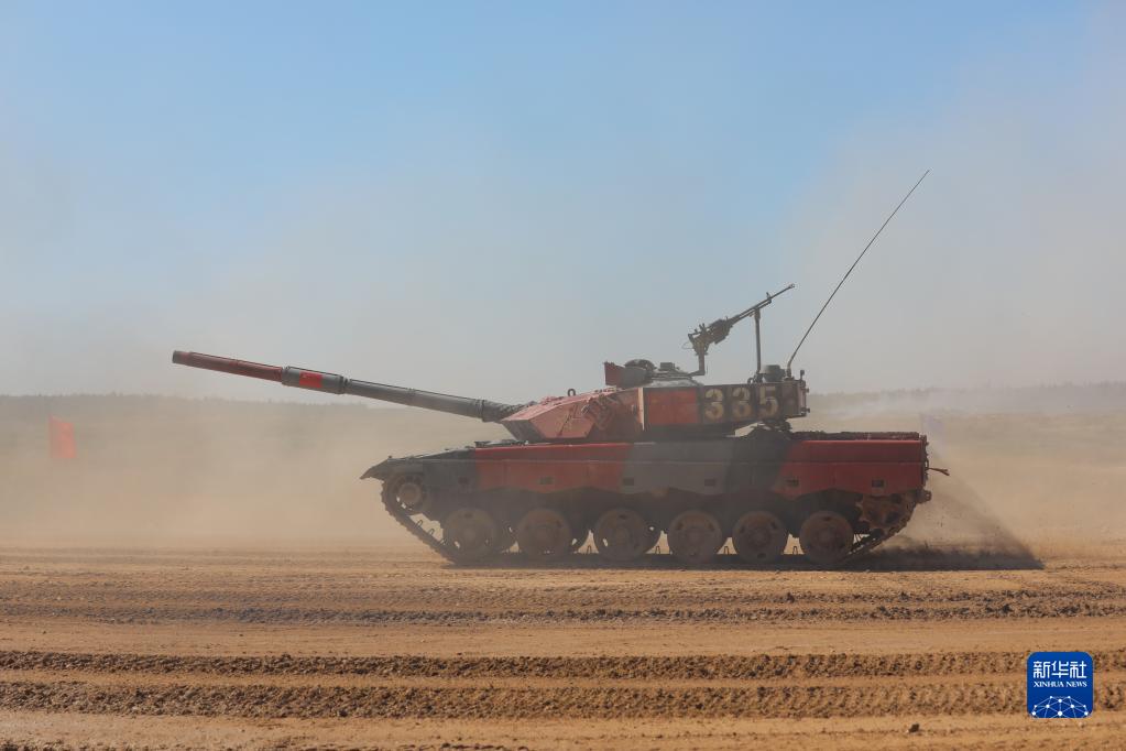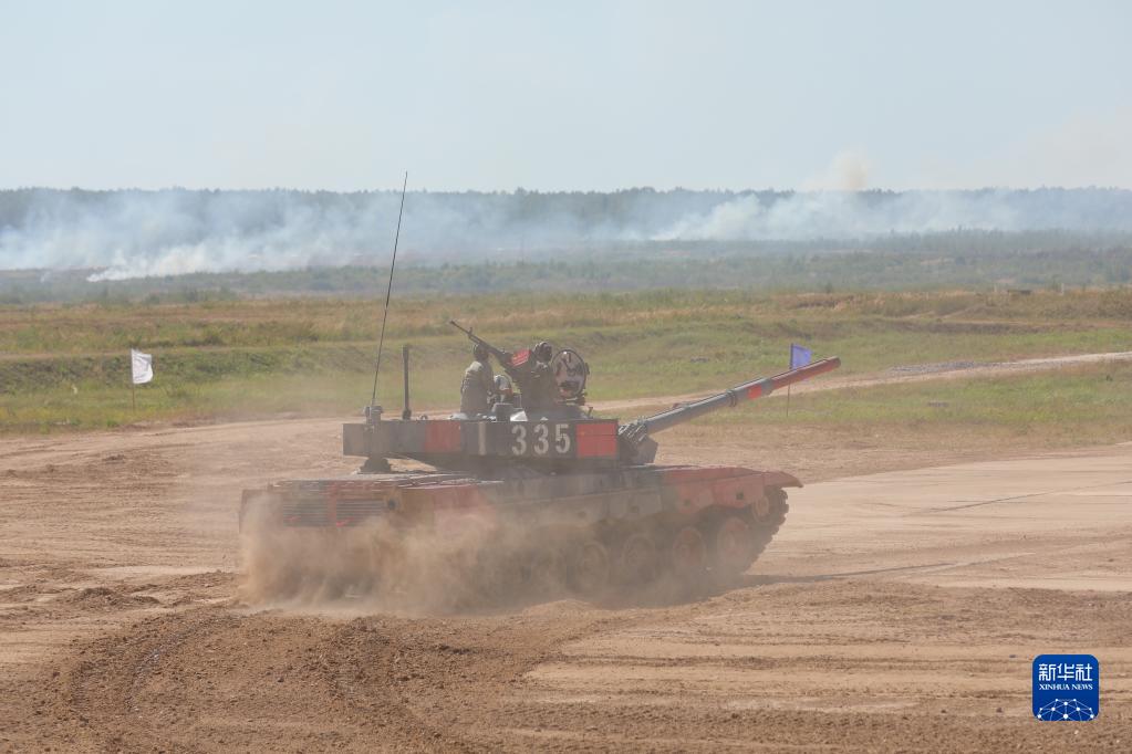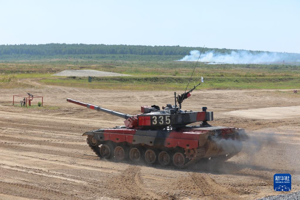 8月24日,在俄羅斯莫斯科州阿拉比諾靶場,中國參賽隊96B坦克在比賽中。新華社發(fā)(羅坤攝)
