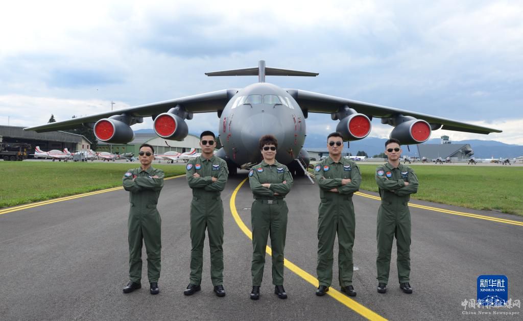 9月1日,在奧地利采爾特韋格機(jī)場,中國空軍運-20機(jī)組人員在運-20前合影。新華社發(fā)(馮振 攝)