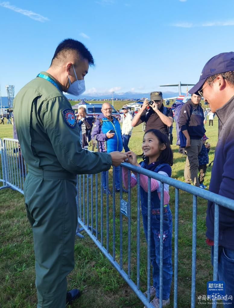 9月2日,在奧地利采爾特韋格機(jī)場,中國空軍運-20飛行員與航展觀眾交流。新華社發(fā)(馮振 攝)