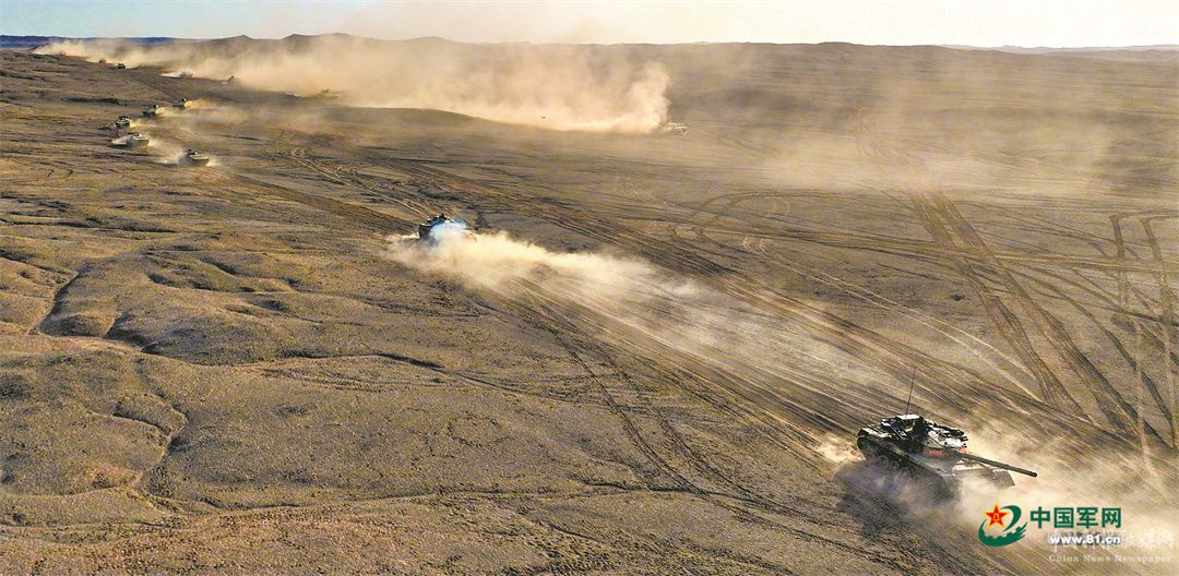 第71集團(tuán)軍某合成旅在西北戈壁某訓(xùn)練場進(jìn)行快速機(jī)動(dòng)訓(xùn)練。王文洲 攝