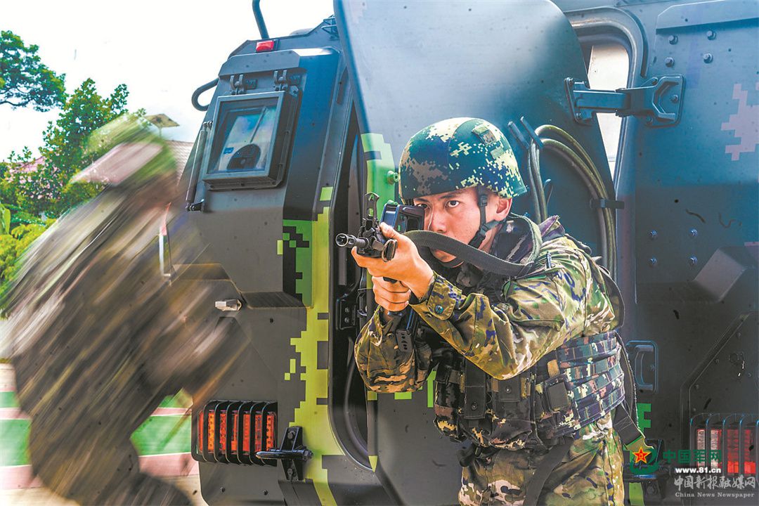 戰(zhàn)略支援部隊(duì)某大隊(duì)官兵參加應(yīng)急處突訓(xùn)練。白文智 攝