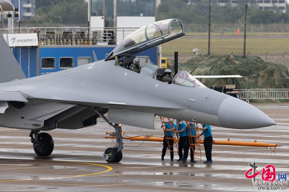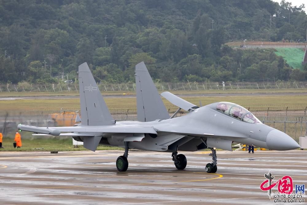 中國網(wǎng)珠海11月6日訊(記者 楊佳)11月6日,距珠海航展(第十四屆中國國際航空航天博覽會)開幕還有2天時間。當日,殲-16D電子戰(zhàn)飛機降落珠海金灣機場,這將是該機型第二次參展。隨后,殲-16D滑入靜態(tài)展示區(qū)。