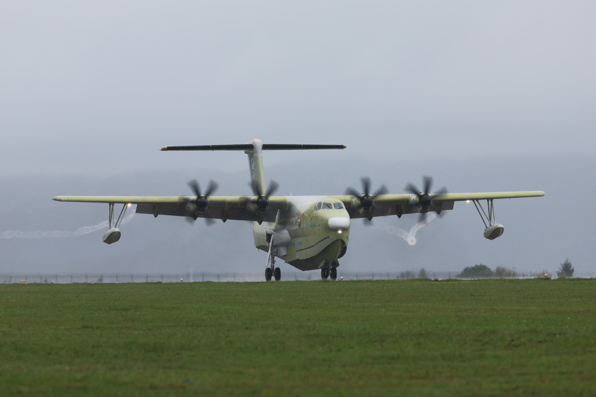 31日上午10:55分,由機(jī)長(zhǎng)陳明、副駕駛孫康寧等四人組成的首飛機(jī)組,駕駛AG600從珠海金灣機(jī)場(chǎng)滑行起飛,完成等速爬升、平飛減速、松桿飛行、模擬進(jìn)場(chǎng)復(fù)飛等試飛任務(wù),在空中飛行20分鐘后平安降落,飛機(jī)狀態(tài)良好,操縱系統(tǒng)正常,各系統(tǒng)運(yùn)行穩(wěn)定。