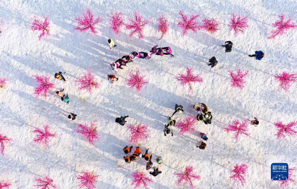 1月10日,寧夏醫(yī)科大學(xué)的留學(xué)生在稻漁空間參加雪地跑比賽(無人機(jī)照片)。當(dāng)日,寧夏醫(yī)科大學(xué)的27名留學(xué)生在老師的陪同下,來到銀川市賀蘭