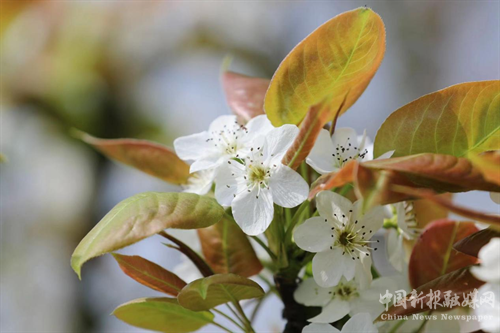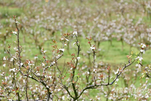 1500畝梨花正翹首枝頭迎風(fēng)綻放。(羅盟攝)