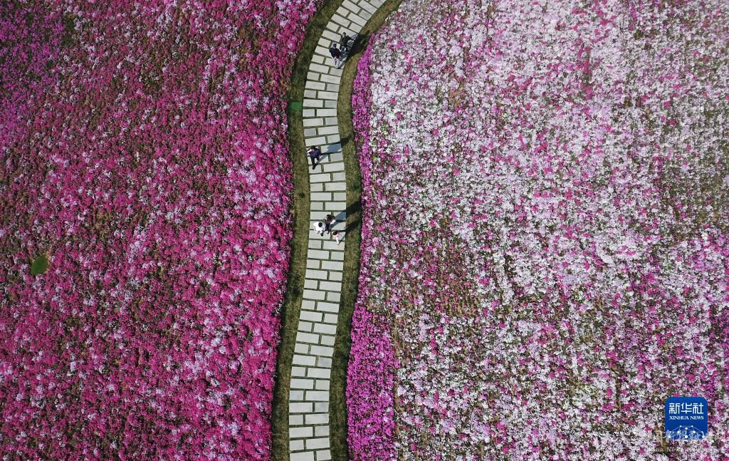 4月8日,在山東濟(jì)南,人們在花海游玩(無人機(jī)照片)。