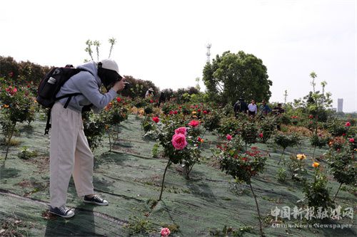 2022年4月22日,安徽省合肥市廬江縣泥河鎮(zhèn)八里村玫瑰花基地,百余畝各色觀賞性玫瑰在暮春時(shí)節(jié)里競(jìng)相開放,花開艷麗,蔚為壯觀,游客在花海里徜徉、拍照留影,留住春光。 (特約記者 巢志斌 攝影報(bào)道)