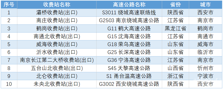 易擁堵緩行收費(fèi)站。假期期間,預(yù)計(jì)出程、返程易發(fā)生擁堵緩行的收費(fèi)站。