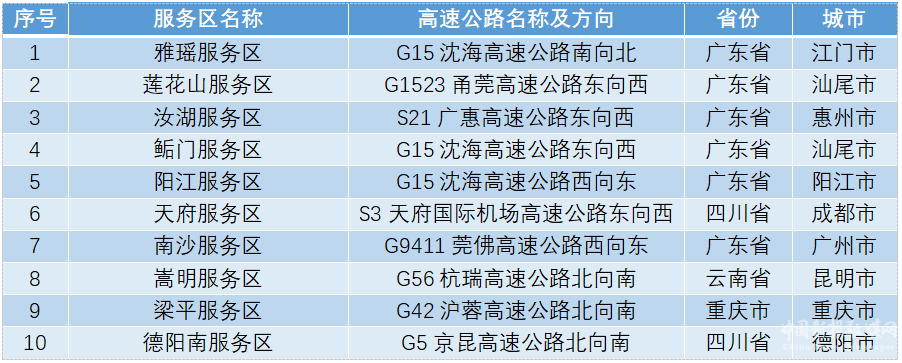 較飽和服務(wù)區(qū)。假期期間預(yù)計(jì)出程、返程較飽和的高速公路服務(wù)區(qū)如下圖所示。