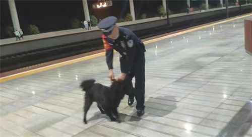 在往衡山西站通往長(zhǎng)沙南站的G432高鐵站臺(tái)方向走的途中,一名高鐵工作人員告訴陳先生,那應(yīng)該是一條警犬。