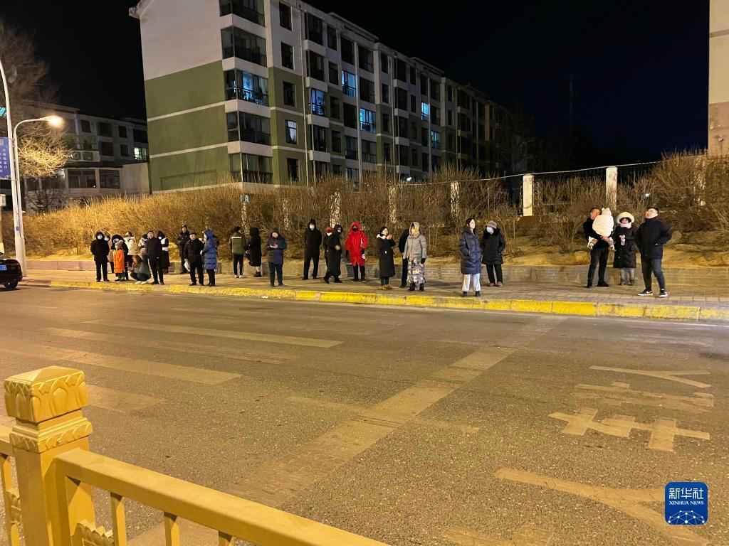 1月8日,在青海省西寧市,市民紛紛到空曠處躲避。新華社記者 李寧 攝