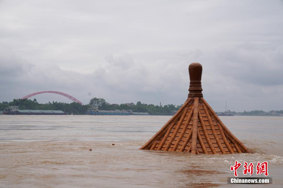 沿岸涼亭被洪水淹沒。 王以照 攝