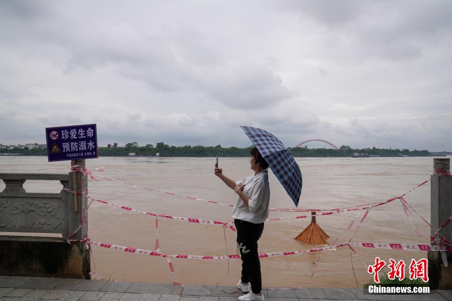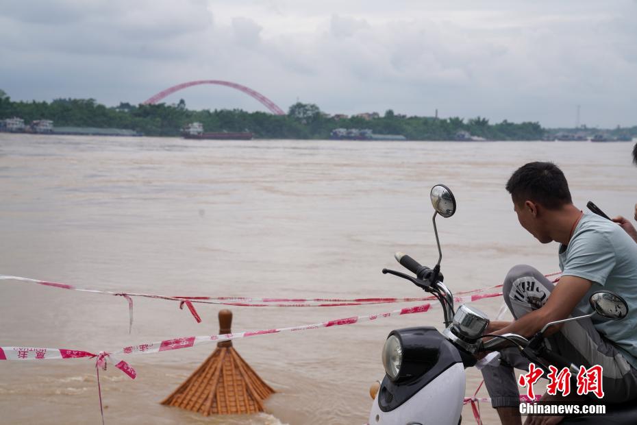 6月14日12時,潯江廣西貴港市平南水文站水位30.69米,超警戒水位1.69米,沿岸涼亭被洪水淹沒。預計潯江貴港平南河段將于15日凌晨出現(xiàn)31.20米左右的洪峰。未來2天,當?shù)刂饕訉3衷诔湟陨细咚贿\行。潯江是珠江流域西江干流中游河段,當?shù)卣雅沙鋈藛T下沉一線做好安全防范工作。一位平南市民在岸邊觀看洪水過境。 王以照 攝