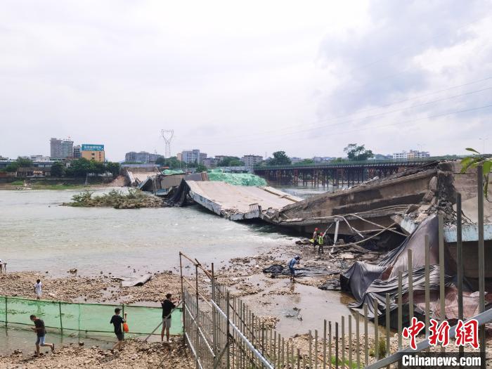 7月19日,橫跨廣西桂林市漓江上近40年的凈瓶山橋被成功爆破拆除現(xiàn)場。 唐夢憲 攝