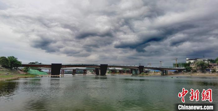 據(jù)了解,新建凈瓶山橋主橋為三跨變截面連續(xù)梁橋,東西兩側(cè)引橋各為三跨等截面梁橋,總跨徑為410米,雙向六車道,橋面全寬50米。(完)