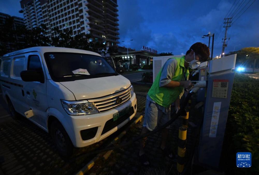 8月14日清晨,張海洋取到充滿電的小貨車,準(zhǔn)備前往物資配送網(wǎng)點(diǎn)。新華社記者 郭程 攝
