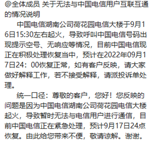 據(jù)悉,因為起火,部分通信設(shè)備進行保護性斷電,導(dǎo)致部分用戶手機無法正常通訊!