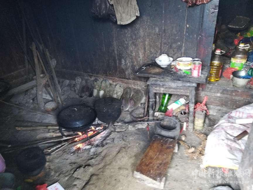 他父親走得早,從小就與母親相依為命 ,母親走后,就一直一個人生活,住在母親留下的老屋里,沒有電燈,也沒有床,直接將棉絮鋪在了木板上就是他睡覺的地方,在地上挖一個坑,坑上打了一個三角鐵架用來生火,即燒水做飯,又烤火取暖,一舉多得。