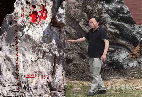 農(nóng)民企業(yè)家李啟才及其向貴州大學動物科學學院捐贈的景觀石