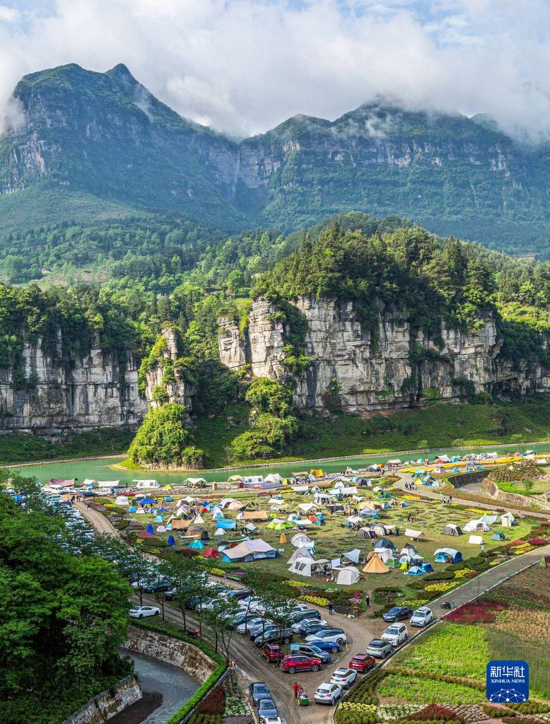“五一”假期,不少地方的市民游客選擇搭帳篷露營的方式,親近自然,樂享戶外。