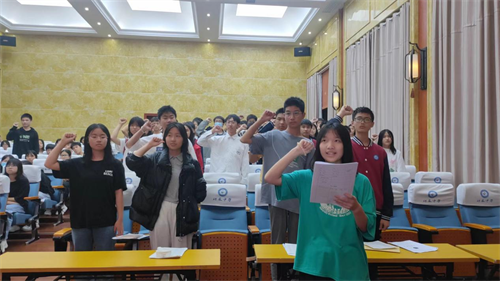 習(xí)近平總書記在慶祝中國共產(chǎn)主義青年團成立100周年大會上曾說:“青春孕育無限希望,青年創(chuàng)造美好明天。一個民族只有寄望青春、永葆青春,才能興旺發(fā)達。”5月25日,2022年上期嘉禾縣珠泉中學(xué)新團員入團儀式在報告廳隆重舉行,本期共有40名同學(xué)加入團組織。