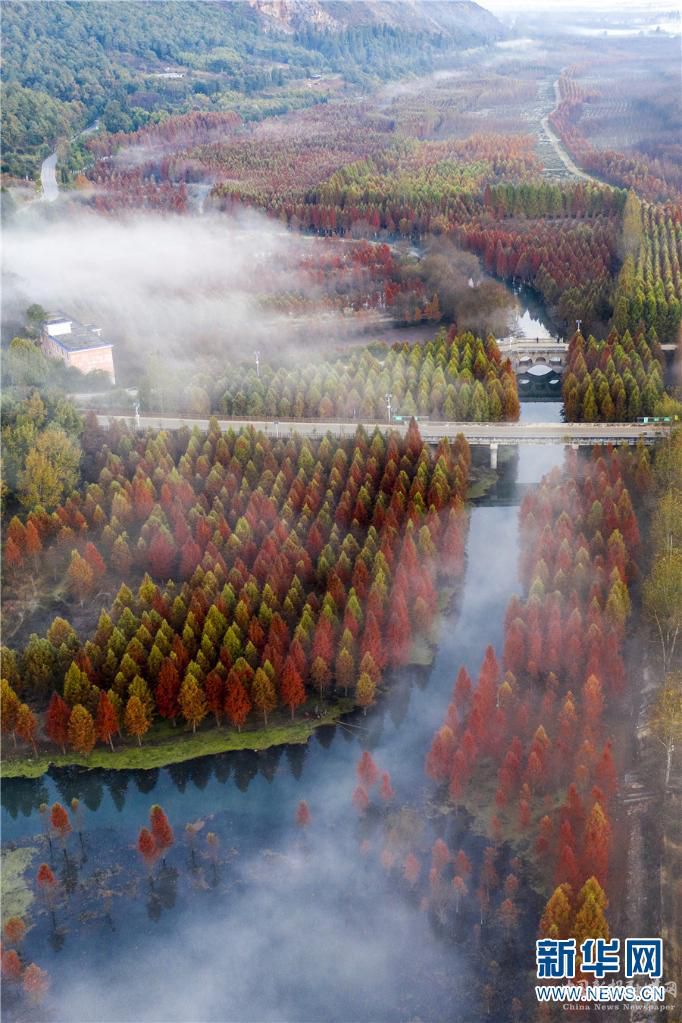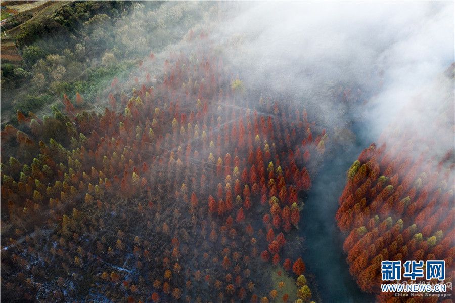航拍昆明甸尾村水杉林(12月8日攝)。新華網(wǎng)發(fā)(昆明市盤(pán)龍區(qū)融媒體中心供)
