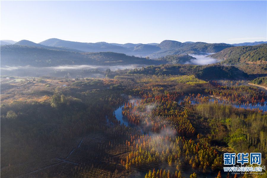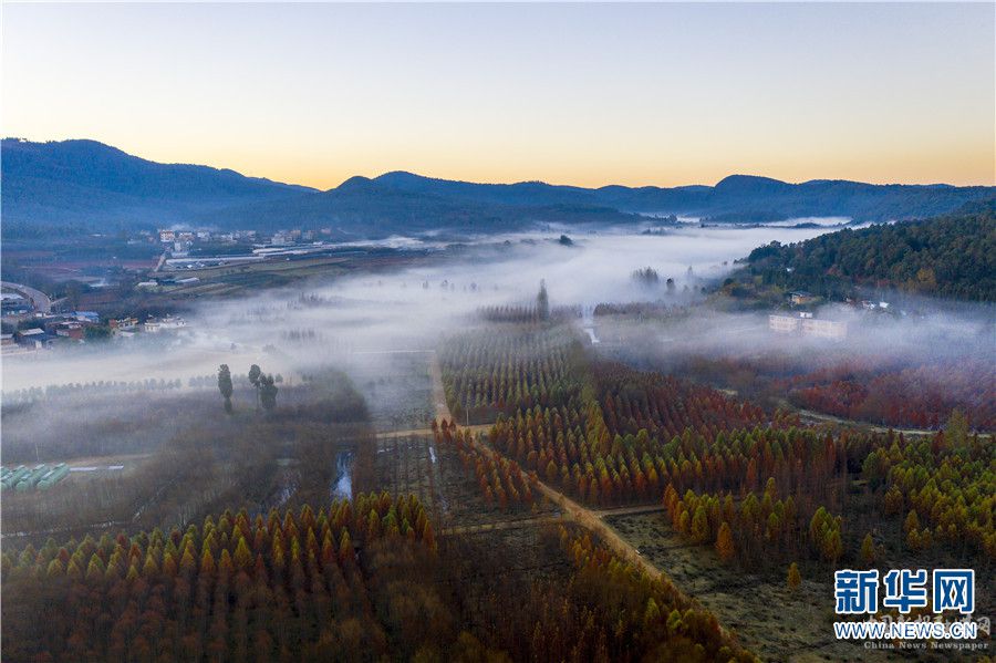 近日,云南省昆明市盤(pán)龍區(qū)滇源街道甸尾村的水杉林色彩艷麗,猶如一幅冬日油畫(huà)。清晨的水杉林,在薄霧繚繞下多了幾分神秘色彩,陽(yáng)光在霧氣的彌散中呈現(xiàn)出各種形狀,水杉的“佇望”也讓水面更顯寧?kù)o。(完)(來(lái)源:昆明市盤(pán)龍區(qū)融媒體中心)
