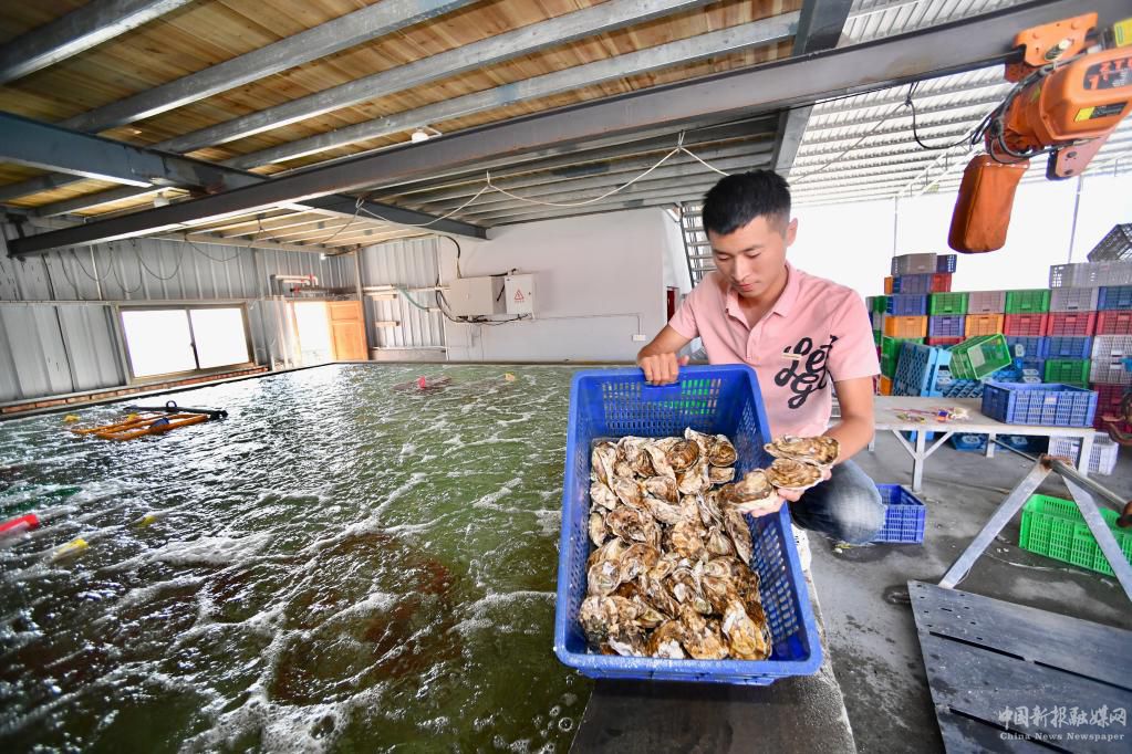 林勤斌是石頭鼻村人,今年29歲,原本在外地從事汽車銷售,2021年回鄉(xiāng)看到鄉(xiāng)親們養(yǎng)生蠔都賺了錢,遂與本村幾位年輕人合伙出海開辟了養(yǎng)殖場,并籌資180余萬元從山東引進(jìn)設(shè)備創(chuàng)辦了生蠔加工廠。“目前生蠔市場仍是供不應(yīng)求,明年我們將追加投資,擴大養(yǎng)殖規(guī)模。”他說。