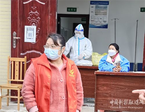 圖二為新良小學教師在村核酸檢測點核酸采樣準備志愿服務。