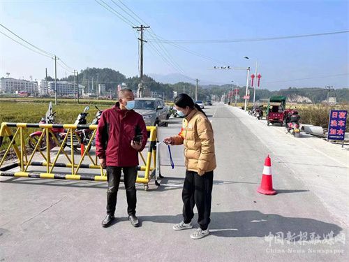 圖為陳怡在疫情防控卡點(diǎn)對過往行人進(jìn)行檢查