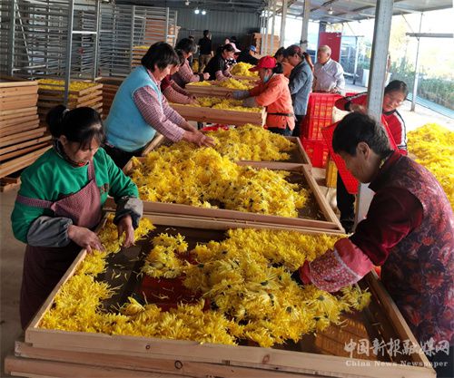 近年來,該家庭農(nóng)場(chǎng)以“黨支部+基地+村民”的模式,大力發(fā)展生態(tài)金絲皇菊、貢菊、桃菊等品種種植,從整地、育苗、移栽、插竹子、綁捆繩子,到除草、采摘和分揀菊花,全部采取人工,吸納150多名周邊群眾長(zhǎng)年就近就業(yè),人均年增收1.5萬元以上。今年有望收獲成品干花5000多公斤,畝產(chǎn)值2萬多元,產(chǎn)品全部出口銷往菲律賓、俄羅斯等國(guó),且供不應(yīng)求。     (巢志斌 攝影報(bào)道)
