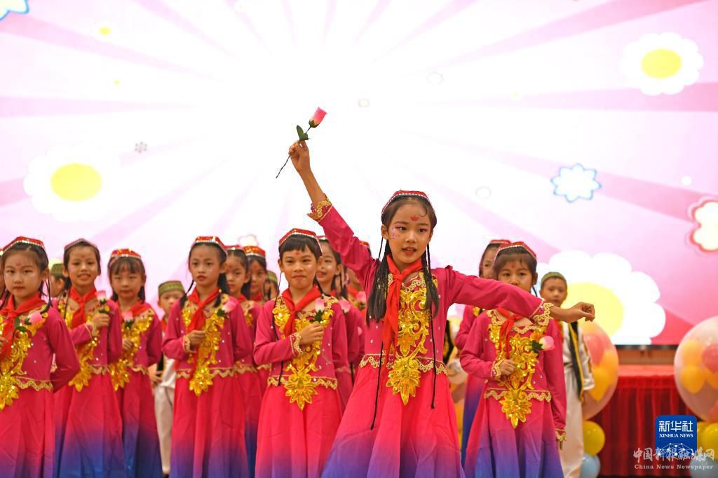 當日,廣西南寧市玉蘭路小學舉行主題為“石榴花開一家親 同心共筑中國夢”的體育節(jié)。開幕式上,孩子們表演民族舞蹈,體驗傳統(tǒng)文化,共度歡樂時光。