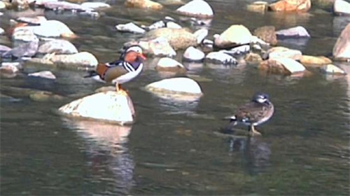 這群野生鴛鴦一共有16只,是近年來當(dāng)?shù)匕l(fā)現(xiàn)的規(guī)模最大的種群。野生鴛鴦成群結(jié)隊,有的在水中嬉戲,有的比翼齊飛。鴛鴦是國家二級重點(diǎn)保護(hù)野生動物,也是著名的觀賞鳥類。