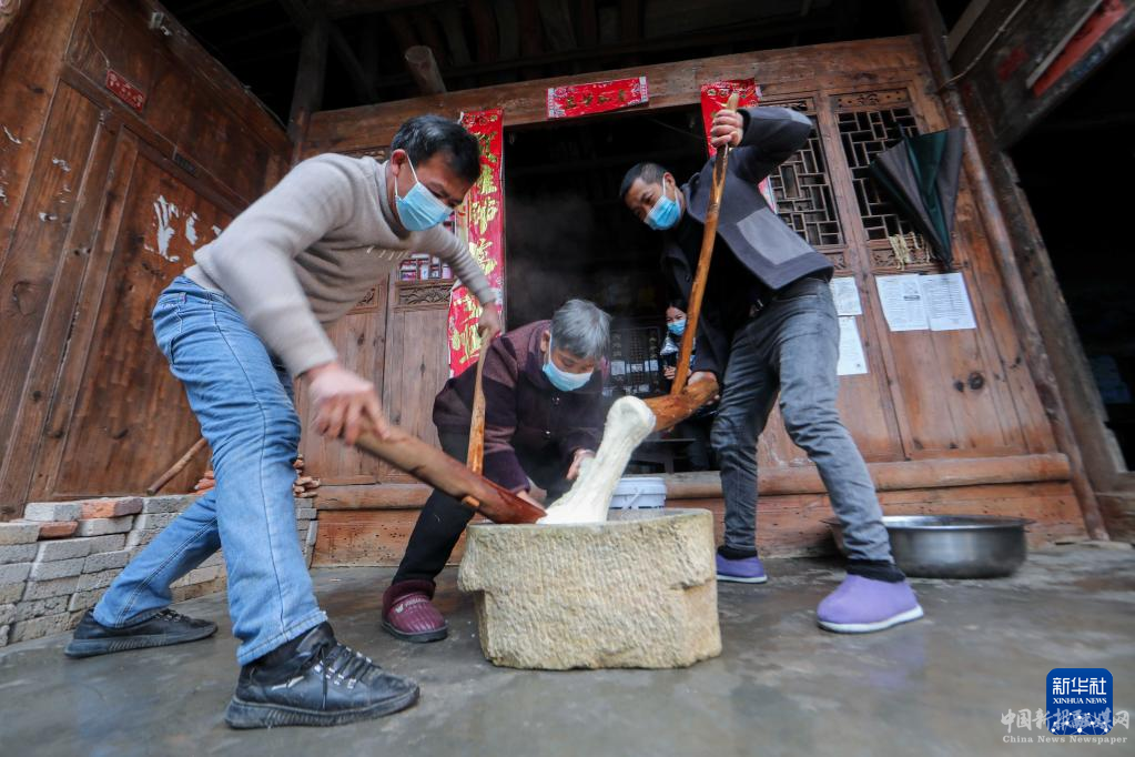 12月27日,岑鞏縣水尾鎮(zhèn)馬家寨村村民在打糍粑。