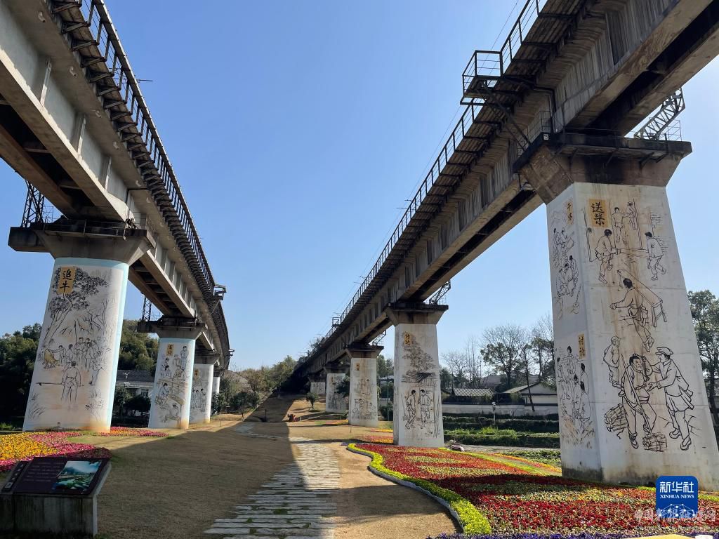 這是湖南省益陽市謝林港鎮(zhèn)清溪村高架橋下的山鄉(xiāng)巨變主題繪畫(3月8攝)。新華社記者 張格 攝