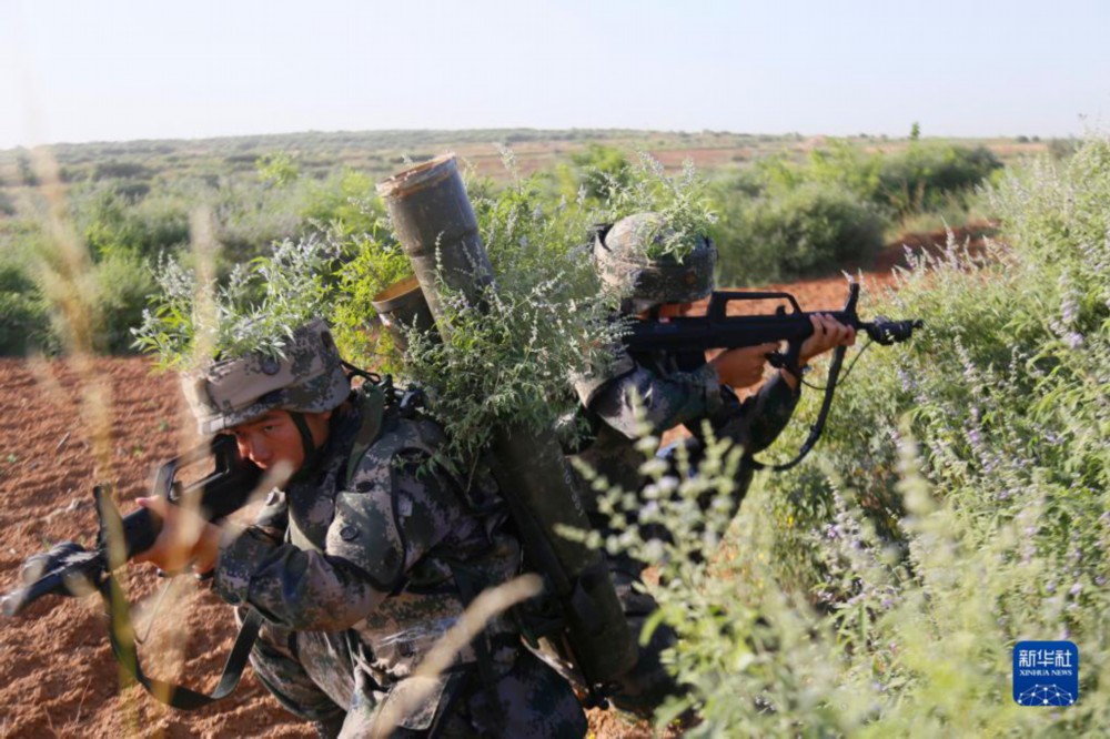 陸軍步兵學院在太行腹地開展“淬火·2018”合成營綜合戰(zhàn)術演練。這是步兵班實施交替掩護前進(2018年6月6日攝)。新華社發(fā)(黃春霖 攝)