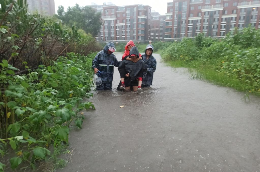 新發(fā)屯街道社區(qū)工作人員轉(zhuǎn)移救助居民。(受訪者供圖)