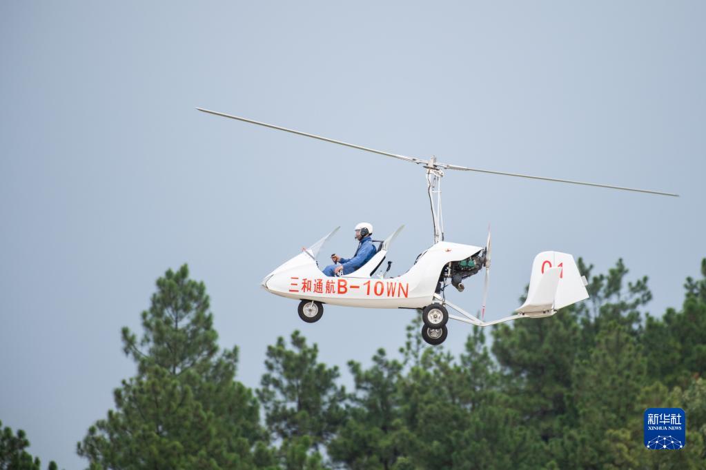 9月1日,在湖南株洲蘆淞機場,旋翼機飛行員進行飛行表演。