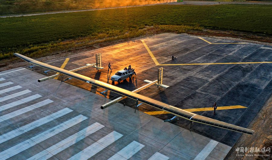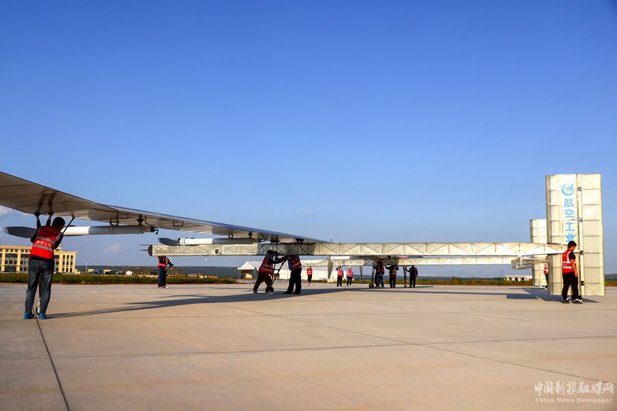 2022年9月3日,陜西榆林,“啟明星50”大型太陽能無人機蓄勢待發(fā)。通訊員 劉鋒 攝