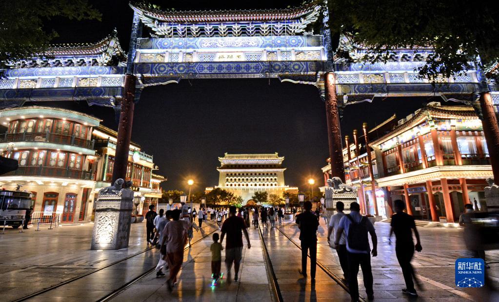 2022年7月6日,市民游客夜游前門商業(yè)街。 新華社記者 李欣 攝