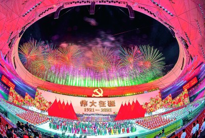 2021年6月28日晚,慶祝中國共產(chǎn)黨成立100周年文藝演出——大型情景史詩《偉大征程》在國家體育場舉行。 “奮進(jìn)新時代”主題成就展圖片