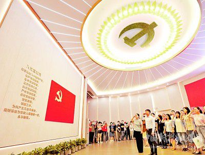 上海市基層黨員在全新開館的中共一大紀(jì)念館重溫入黨誓詞。 “奮進(jìn)新時代”主題成就展圖片