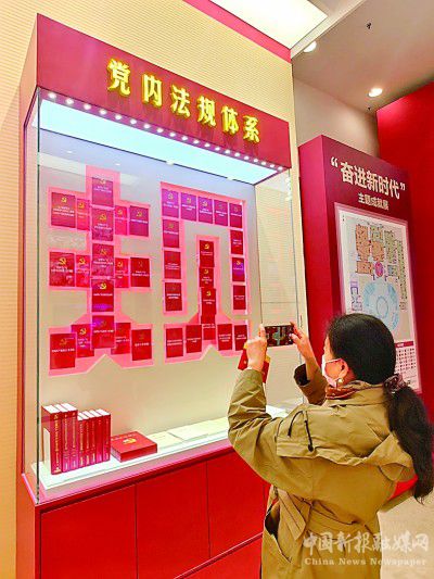 觀眾在黨內(nèi)法規(guī)體系書架前參觀。光明日報記者閆匯芳攝/光明圖片
