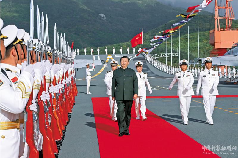 圖:2019年12月17日,中國第一艘國產(chǎn)航空母艦山東艦在海南三亞某軍港交付海軍。習(xí)近平出席交接入列儀式并登艦視察。這是儀式結(jié)束后,習(xí)近平登上山東艦,檢閱儀仗隊。 新華社
