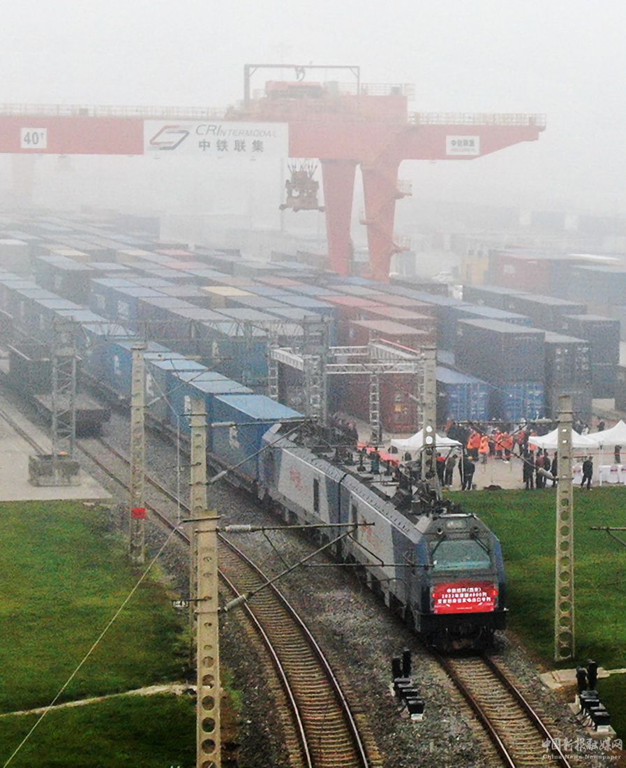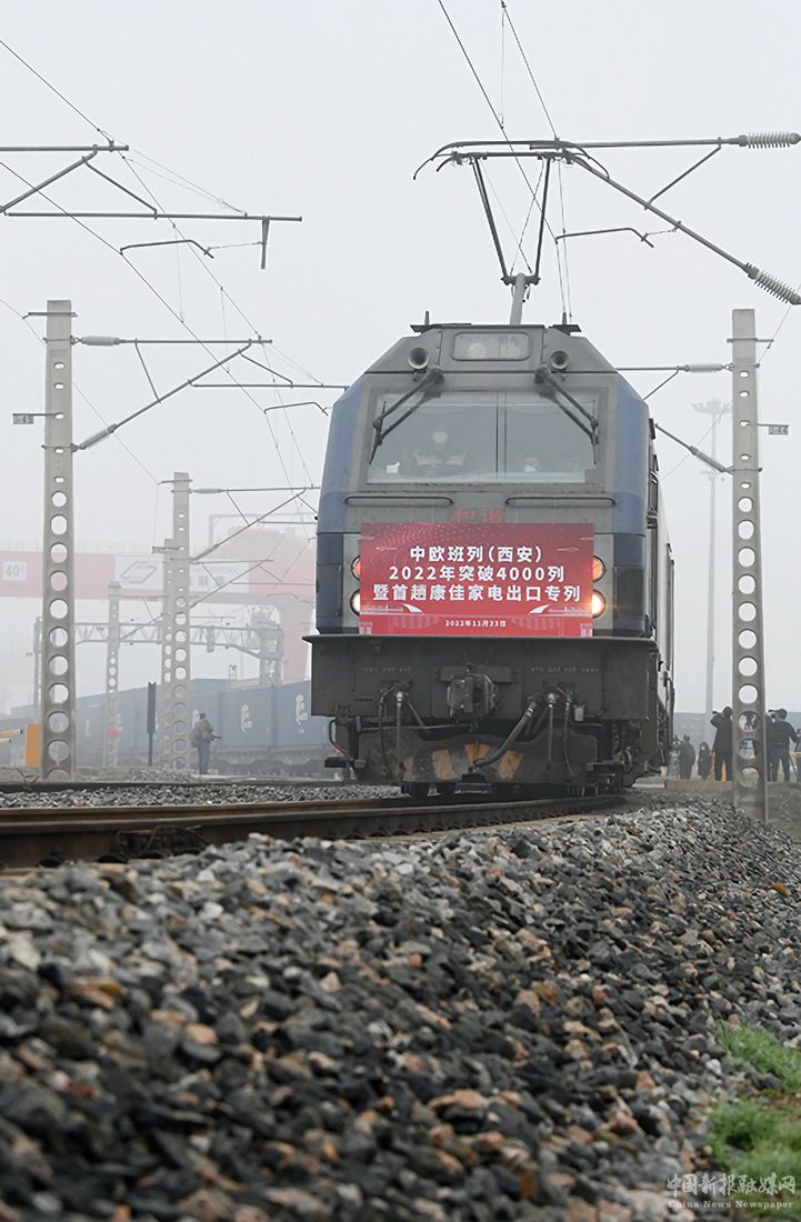 11月23日,滿載家電產(chǎn)品的中歐班列從西安國際港站駛出。