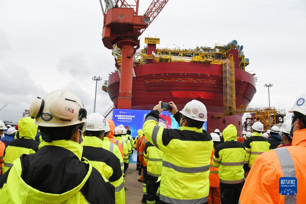 當(dāng)日,由海洋石油工程股份有限公司為英國(guó)業(yè)主量身定制的“海上油氣巨無(wú)霸”——巨型智能集成化圓筒型浮式生產(chǎn)儲(chǔ)卸油裝置(FPSO)在山東青島順利交付。該裝置整體高度118米,總重約3.2萬(wàn)噸。