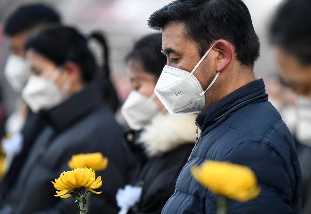 12月6日上午,中共中央、全國人大常委會、國務院、全國政協(xié)、中央軍委在北京人民大會堂隆重舉行江澤民同志追悼大會。舉國上下,各族人民沉痛悼念江澤民同志。這是在山東省青島市,干部職工肅立默哀。新華社記者 李紫恒 攝